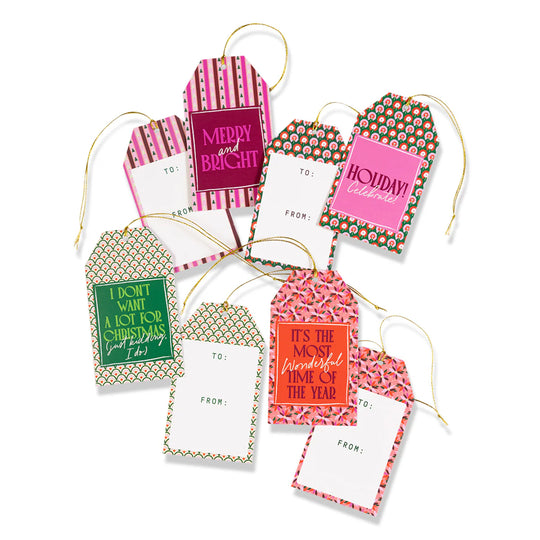 Add a finishing touch to your holiday presents with our die-cut gift tags, which metallic accents and spaces for "To" and "From." Set includes 2 of each saying. Sayings Include : Merry & Bright Holiday Celebrate...Regular price $9.00 -