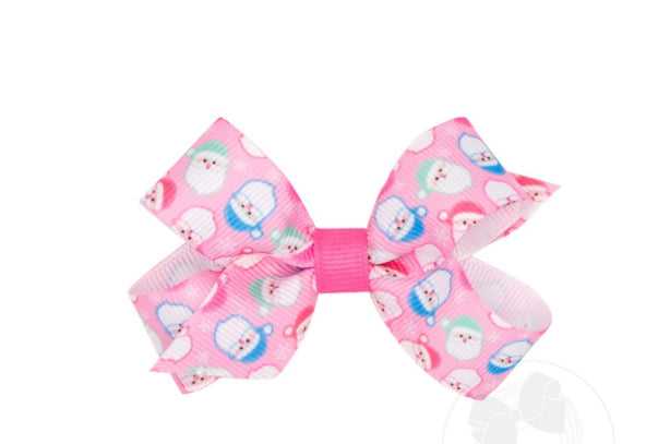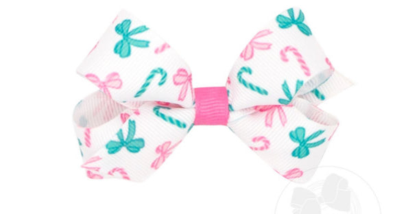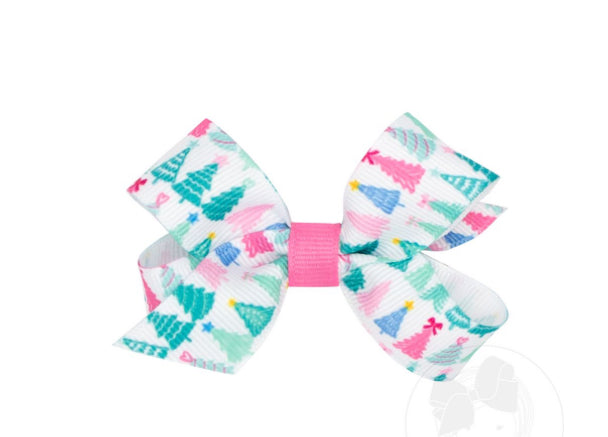 Mini Pink Christmas Tree Print Grosgrain Hair Bow