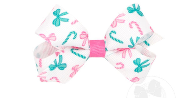 Sweet as a Candy Cane and bright as a Christmas tree! These festive (and Pink!) printed grosgrain hair bows complement any holiday outfit. Perfect for tree trimming, family photos, and class holiday parties! This bow is sure to stay in her hair all day with the patented WeeStay™ no-slip hair clip.