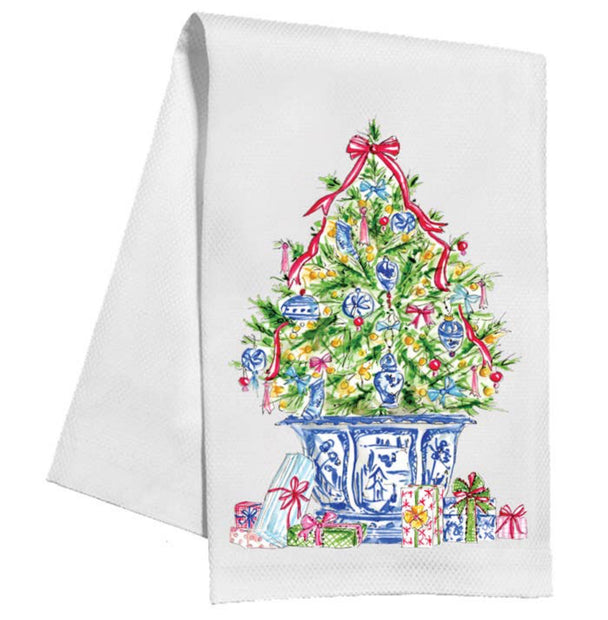 Christmas Tree with Blue Chinoiserie Ornaments Kitchen Towel