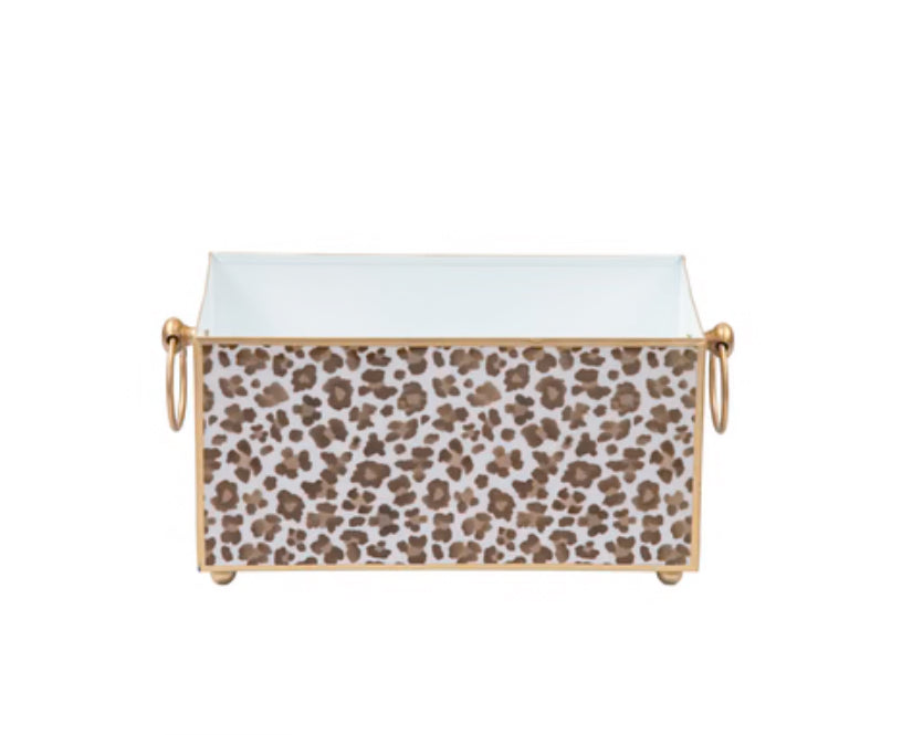Leopard Cream Rectangular Metal Cachepot Planter For Bedroom, Office, Kitchen Or Living Room