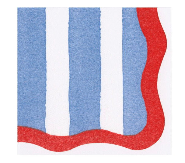 Cafe Stripe Scallop Blue/Red Paper Linen Die Cut Napkin