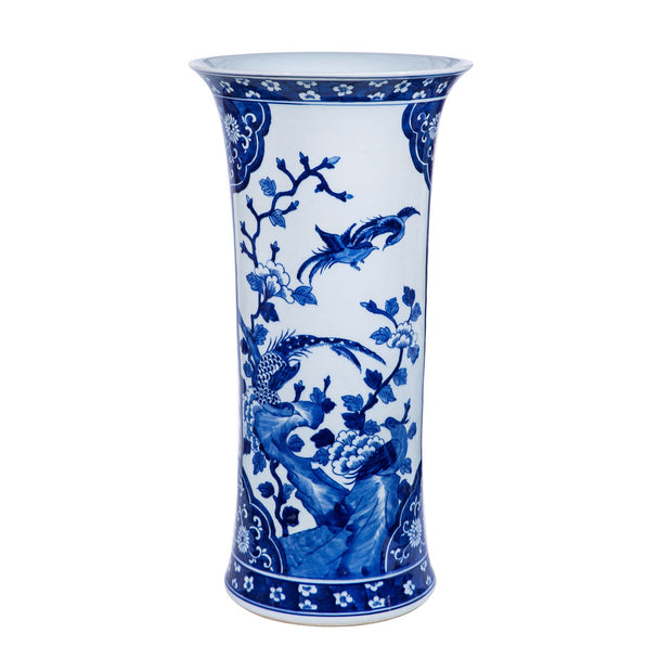 Blue And White Pheasant Paneled Vase