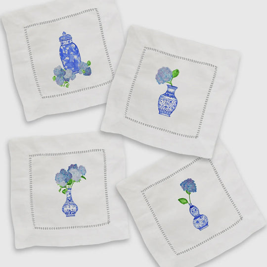 Chinoiserie Linen Cocktail Napkin Set of 4