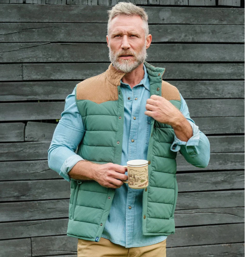 Inspired by an archive of 80's family photos at one of our favorite places, this vest is designed with all the goods. Corduroy, western yoke, and a medium fill for the perfect amount of warmth. Throw this over anything to finish your layer game strong.