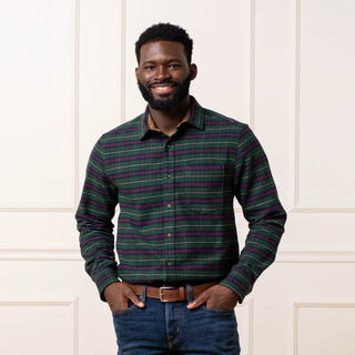 Our classic flannel button down shirt is given a special twist with faux suede details at the inner cuffs and collar. Our brushed organic cotton fabric has a soft and lofty finish that resists pilling and ensures a long life to be worn and loved.