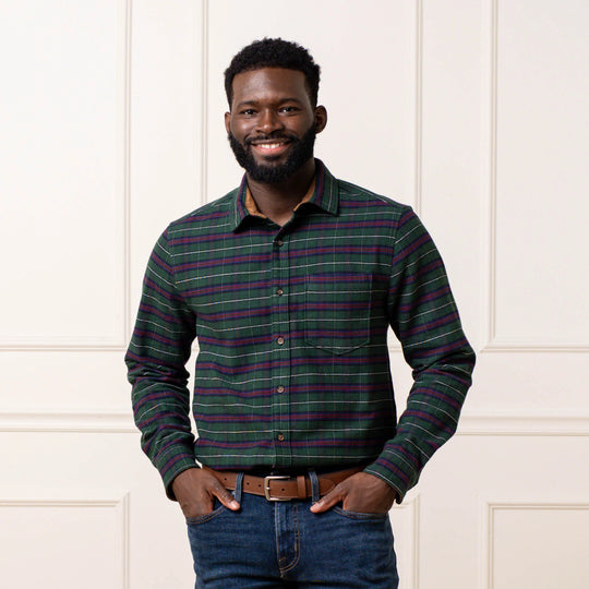 Our classic flannel button down shirt is given a special twist with faux suede details at the inner cuffs and collar. Our brushed organic cotton fabric has a soft and lofty finish that resists pilling and...Regular price $65.00