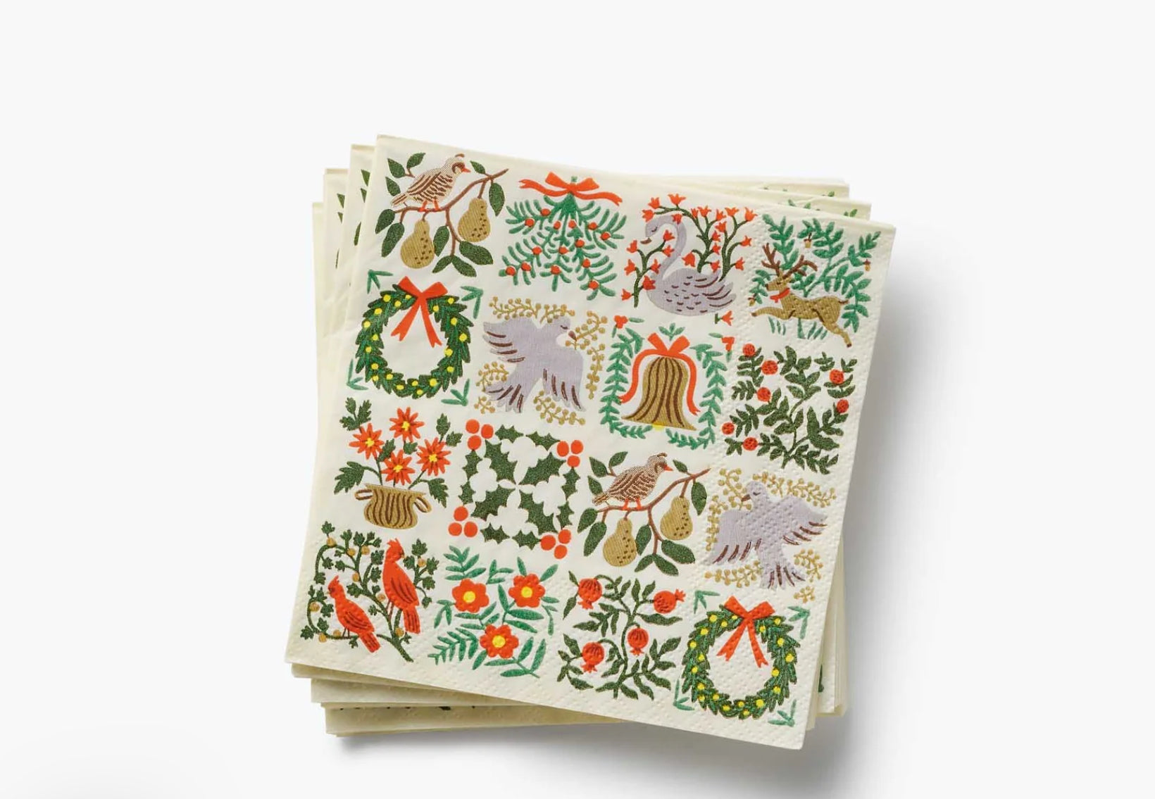 With charming Christmastide illustrations, these festive cocktail napkins bring a little extra cheer to the party.